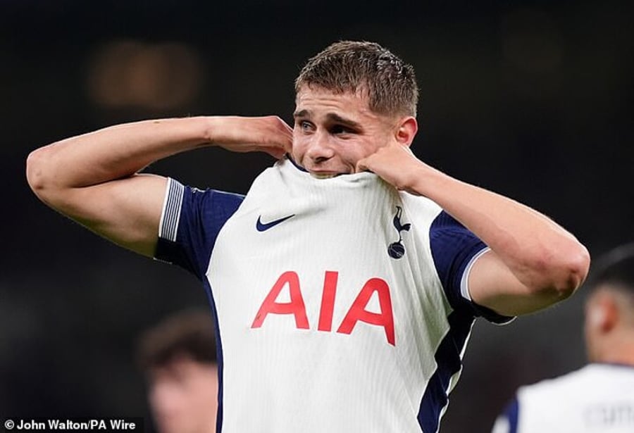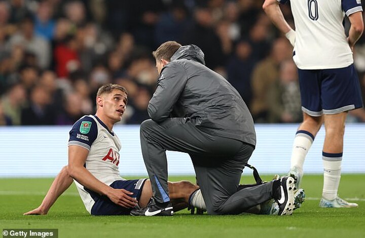 Micky van de Ven was reduced to tears as he was substituted in the early stages of Tottenham's Carabao Cup win over Manchester City.