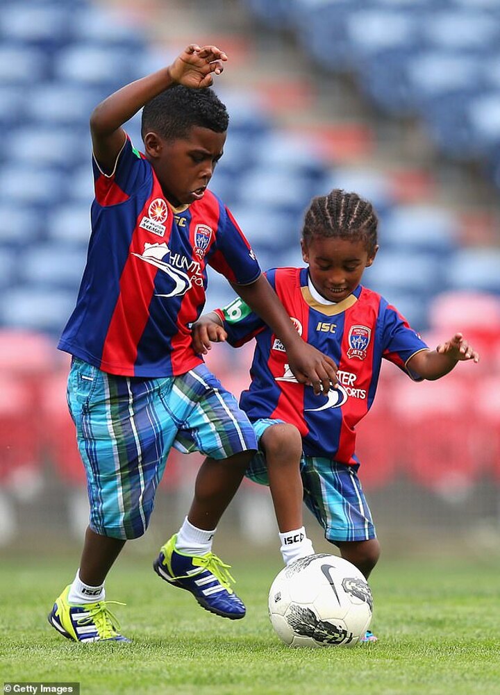 During his spell at Newcastle Jets in Australia in 2012, the brothers, aged four and six at the time, could be seen stealing the show on the pitch after matches, kitted out in special 'Heskey' shirts.