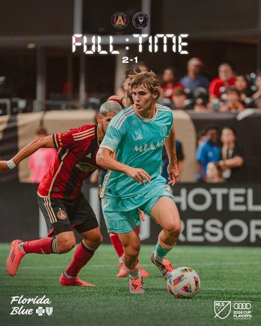 The final score is Atlanta United 2-1 Inter Miami CF. Xande Silva scored with about a minute to go in stoppage time shortly after a goal by Lionel Messi was waved off for a clear offside, giving ninth-seeded Atlanta United a 2-1 victory over Inter Miami on Saturday night to level the best-of-three first-round MLS playoff series at one game apiece.