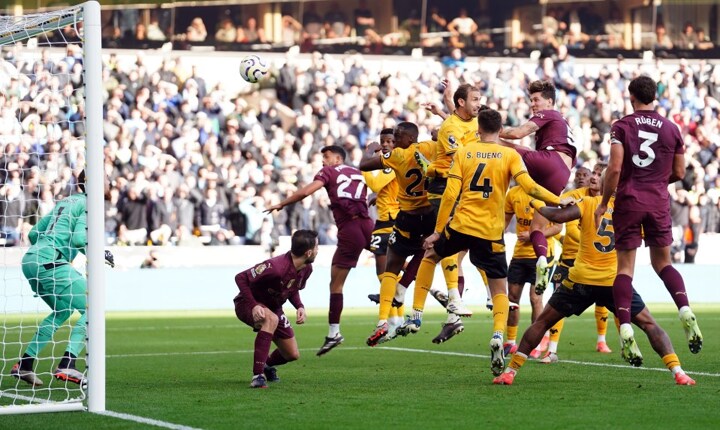 John Stones' header was originally written off for offside - before the VAR decided Bernardo Silva was not interfering with Jose Sa despite being in an offside position.