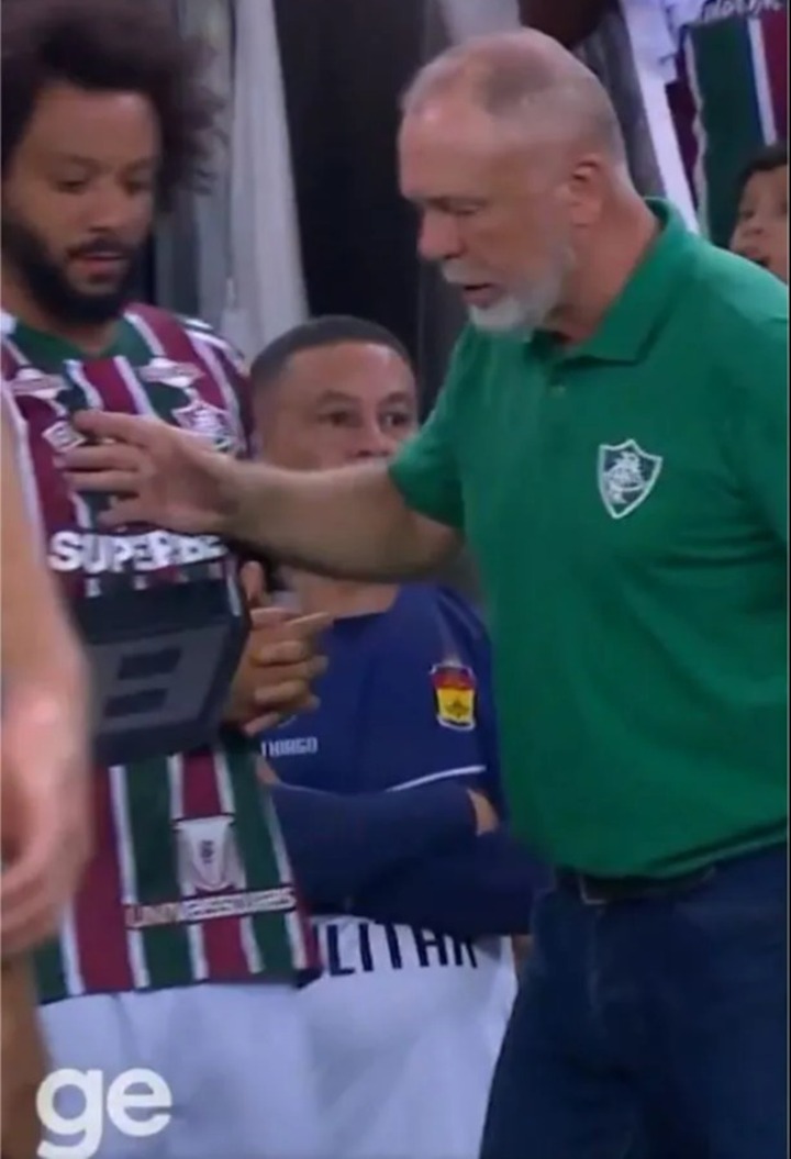 But as Menezes gave Marcelo instructions on the sideline, the ex-Real Madrid man seemed to disagree with what he was being told.