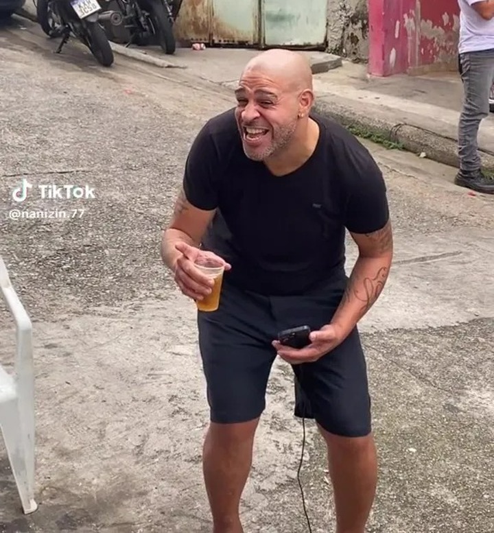 Brazil legend Adriano seen partying in the street with no shoes on